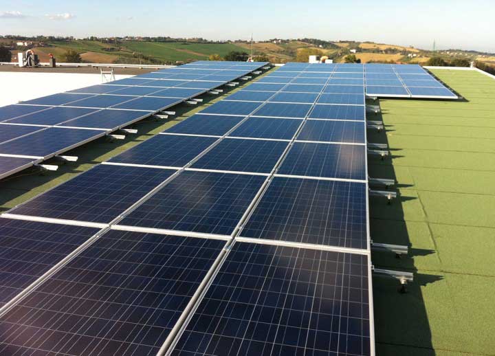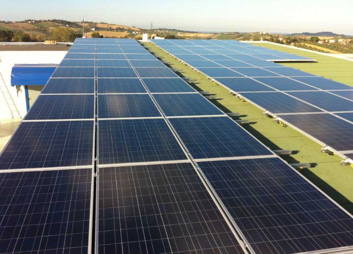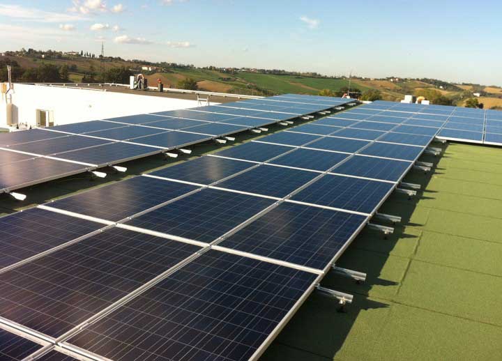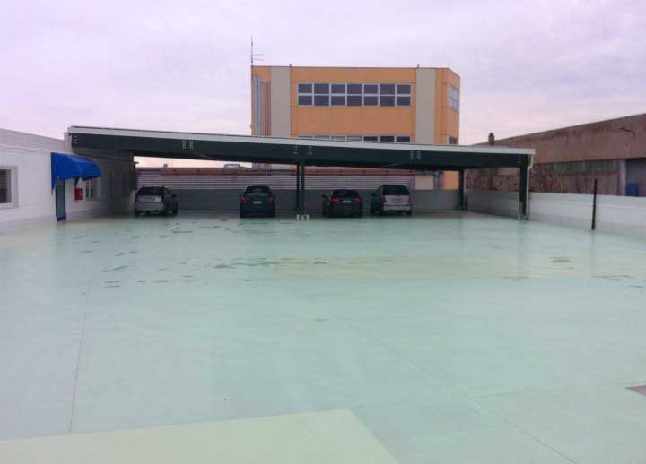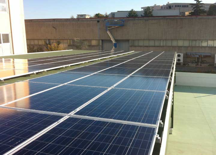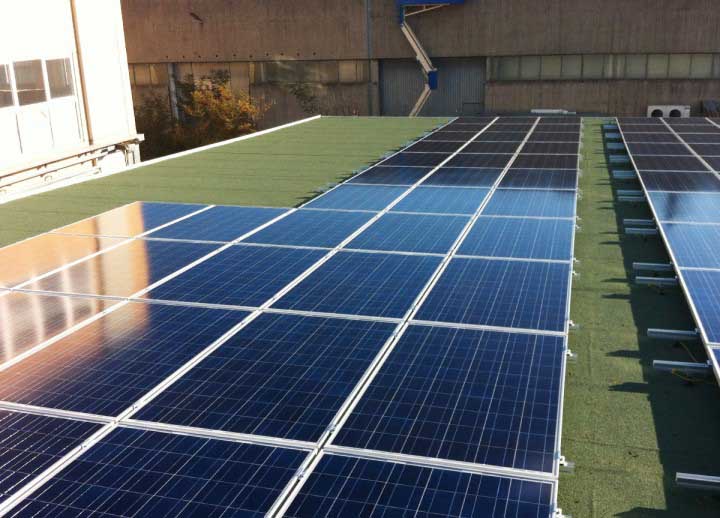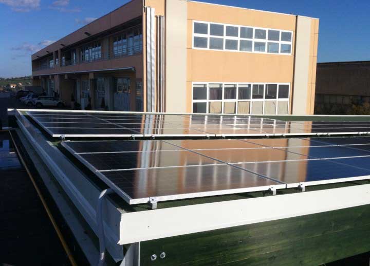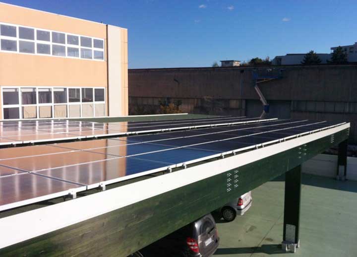Impianto di 20kw installato su pensilina in legno, con sistema di fissaggio a vitoni e inverter ABB trio 20.0.