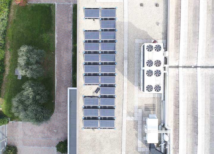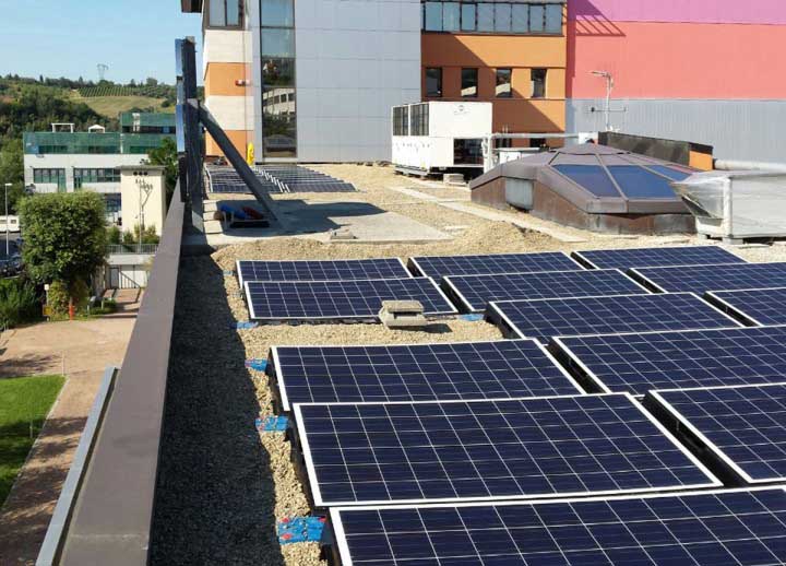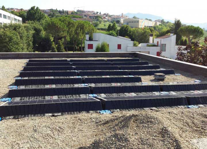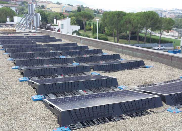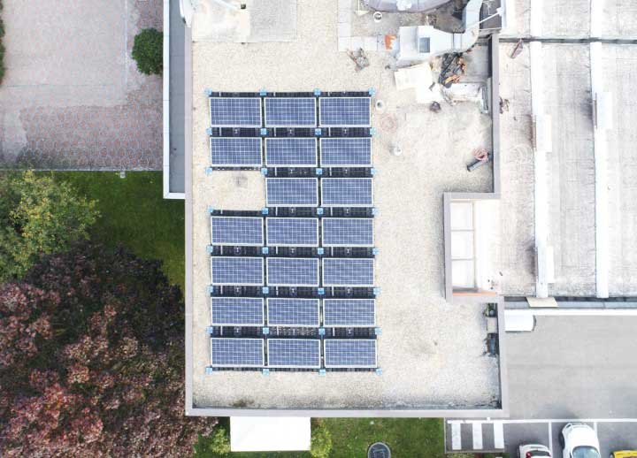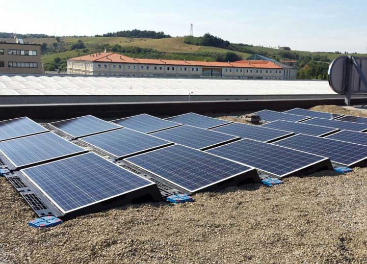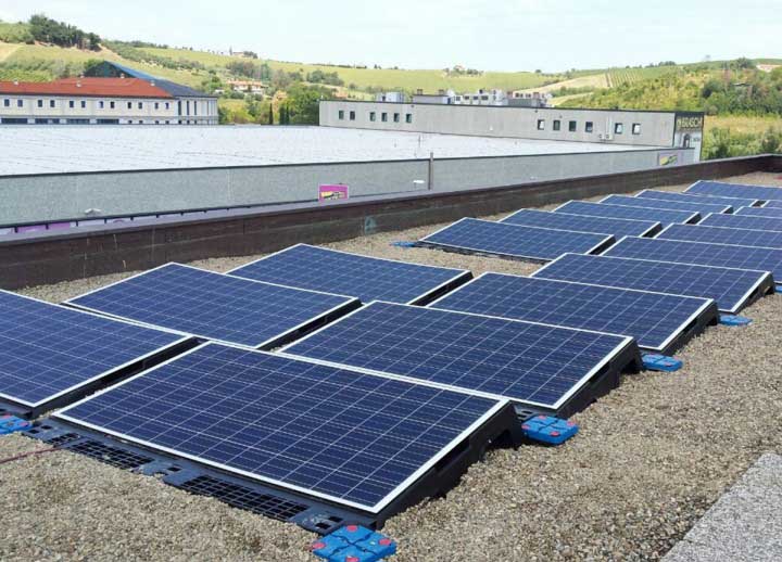 Impianto fotovoltaico da 12 kW con sistema di appoggio a zavorra.