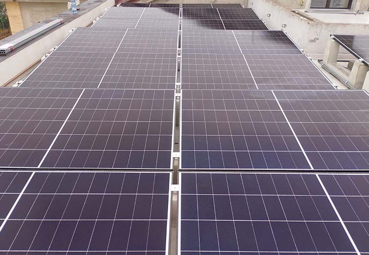 Ecco le caratteristiche dell’impianto fotovoltaico Aiko da 6 kW installato sul tetto piano di una residenza a Coriano: