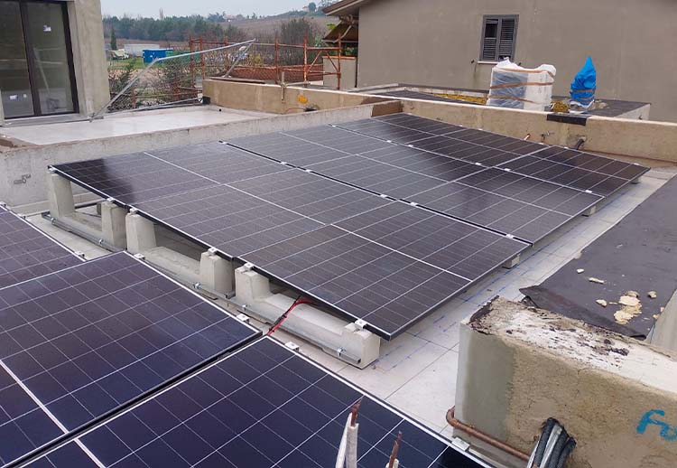 Per installare un impianto fotovoltaico su un tetto piano, è fondamentale progettare un sistema di ancoraggio che massimizzi lo spazio disponibile sul tetto, garantendo allo stesso tempo la corretta inclinazione dei moduli fotovoltaici per la produzione di energia elettrica. Free Lux realizza questo tipo di impianti, come dimostra anche il nostro recente progetto, che ci ha permesso di installare un impianto fotovoltaico da 6 kW su un tetto piano per una residenza a Coriano.