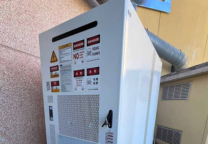 Batteria Industriale Huawei 107 kWh installata per soddisfare grosse capacità di stoccaggio energia.