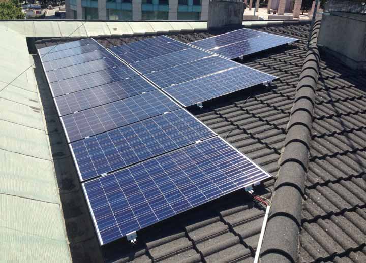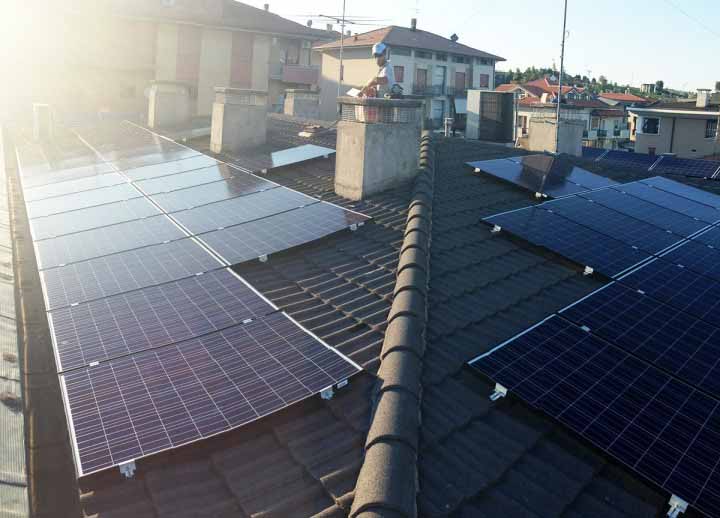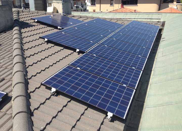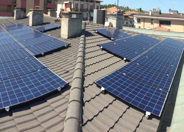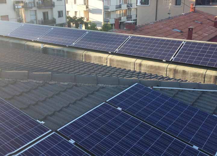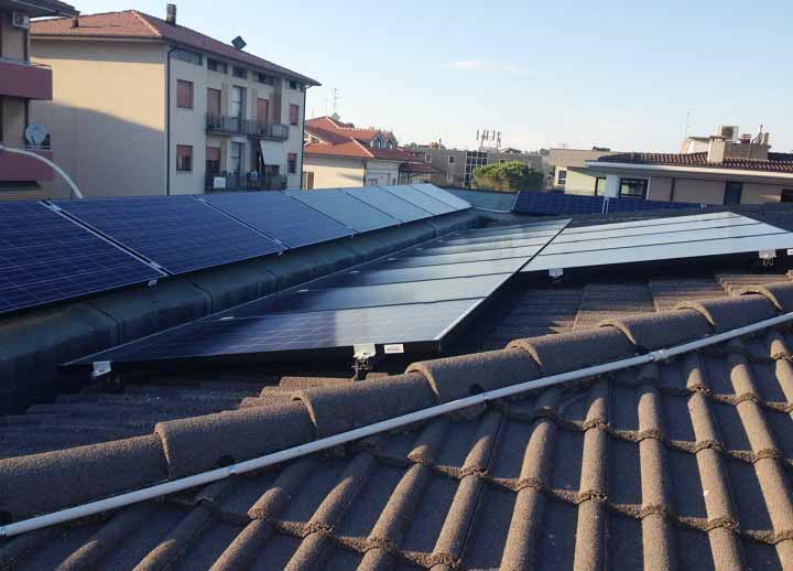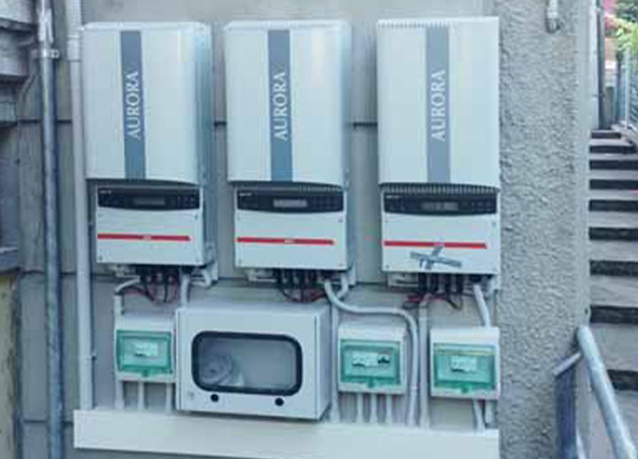 18 kw di TRINA da 250w installato su una struttura parzialmente integrata e 3 inverter Aurora da 6000kw monofase.